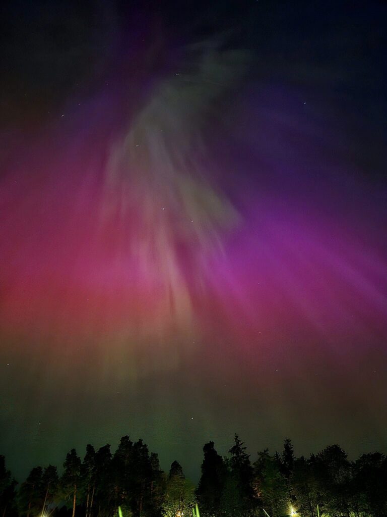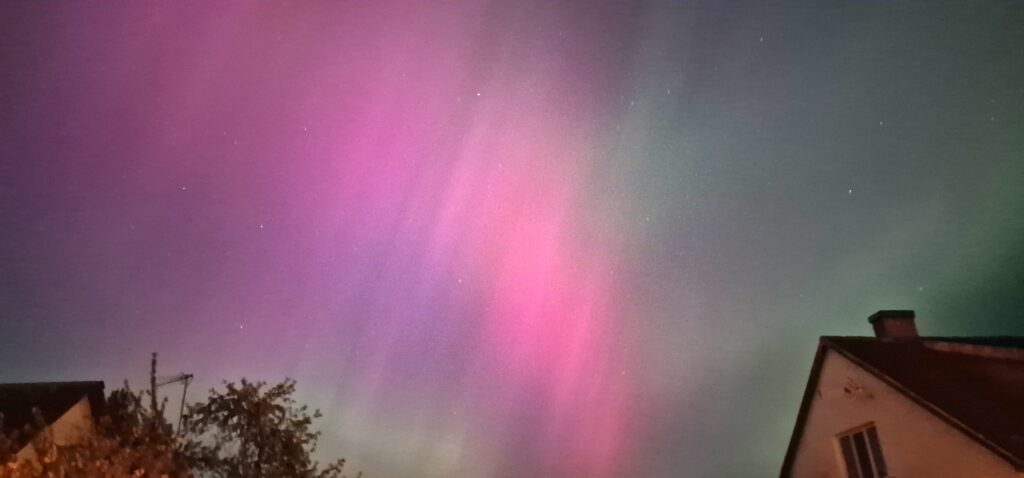 Baušķenieks Mārcis Paņēvics seko ziemeļblāzmas prognozēm viedtālruņa aplikācijās. Viņš atzīst, ka tik iespaidīga dabas parādība mūspusē vēl nav bijusi. “Aplikācijā atnāca paziņojums, ka būs liela iespējamība redzēt, un es devos uz vietām, kur nav laternu un mazāk pilsētas gaismas. Labākais mirklis bija ap 23:30 līdz pusnaktij,” stāsta M. Paņēvics. Viņš fotografējis ar telefonu “Sony Xperia 1|V”, izmantojis statīvu, lai ir stabilāk, jo rokās turēt neesot iespējams dēļ ilgās ekspozīcijas.