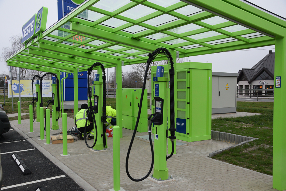 Savukārt stacijas plašā nojume pasargā no lietus un sniega, padarot uzlādes procesu ērtāku un patīkamāku. Tāpat arī stacijas teritorijā atrodas ātrās ēdināšanas restorāns “Hesburger” un “Narvesen” veikals, kur klienti var baudīt maltīti vai tasi kafijas, kamēr notiek auto uzlāde.