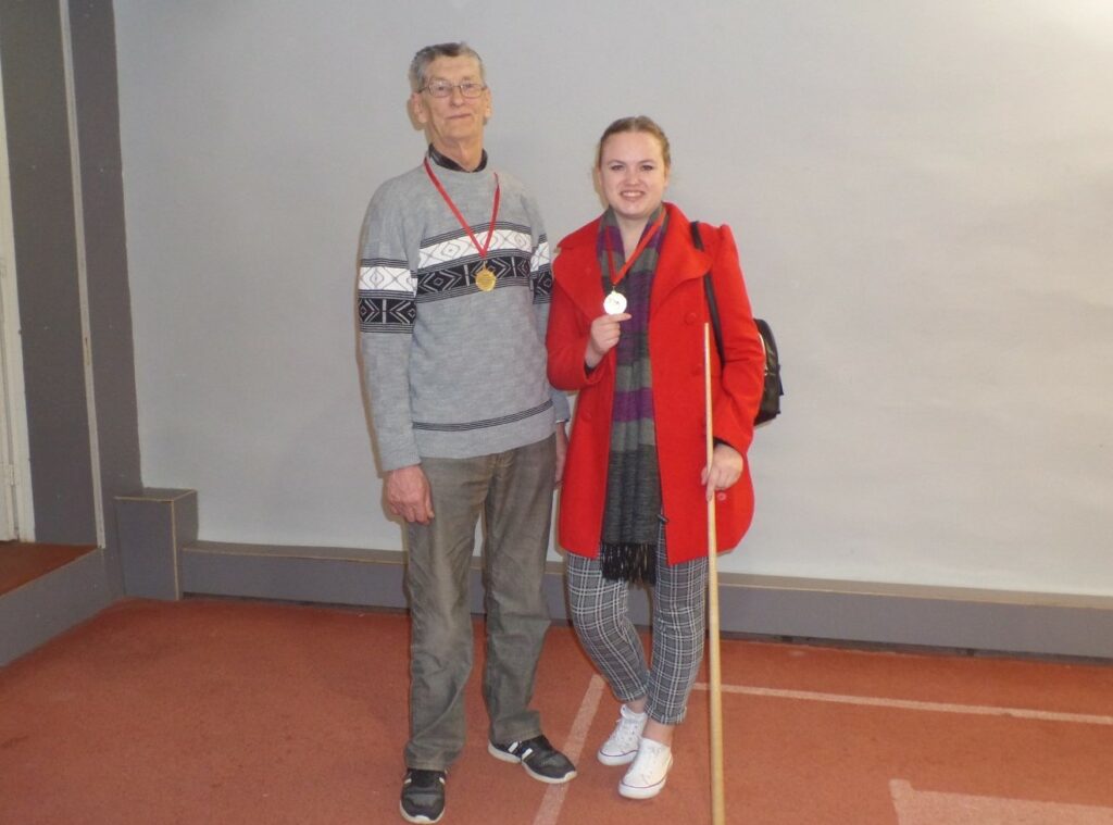 Santa Gudža un Jānis Salna uzvarēja Bauskas novada atklātajā čempionātā jauktajās dubultspēlēs novusā. Foto – J. Jegorovs