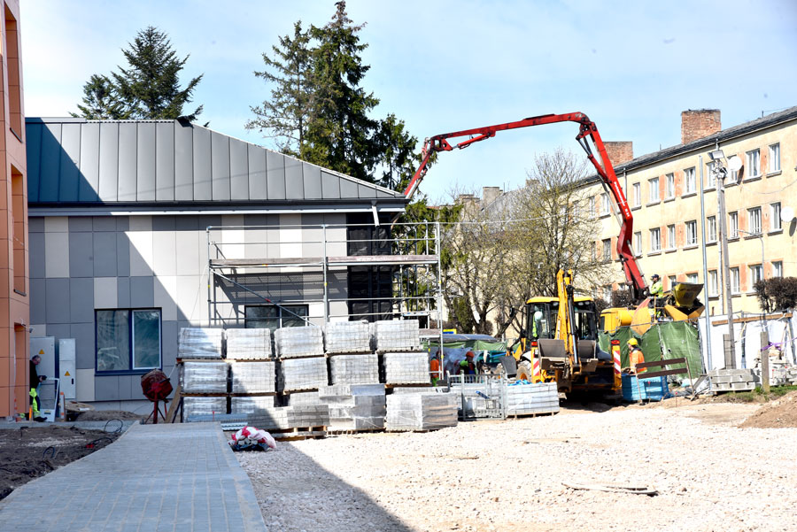 Ielas pusē pie topošās grupu dzīvokļu ēkas notiek stāvlaukuma izbūve, kur automašīnas varēs atstāt arī pilsētas iedzīvotāji.