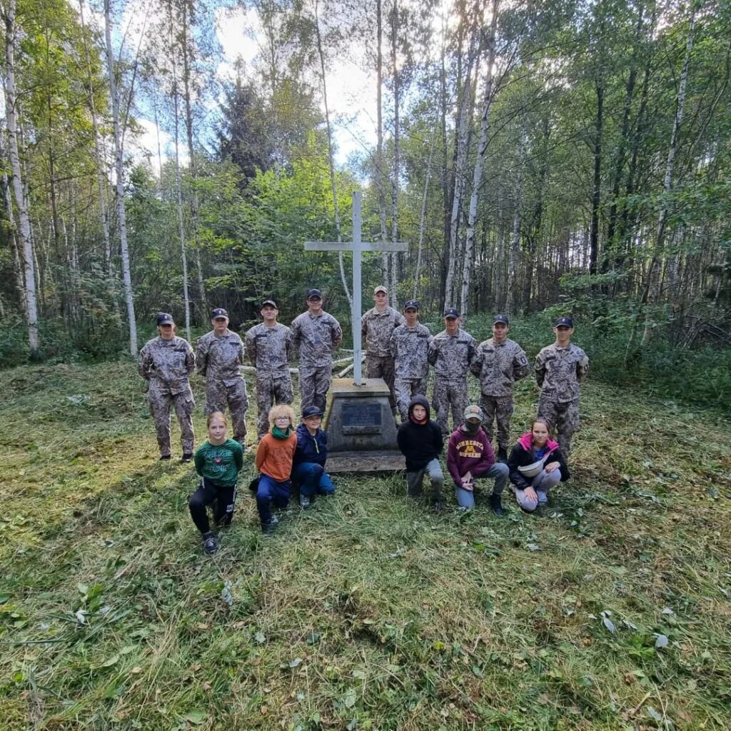 Iecavas vidusskolas un pamatskolas jaunsargi kopā ar zemessargiem sakopa Jāņa Freimaņa piemiņas vietu.