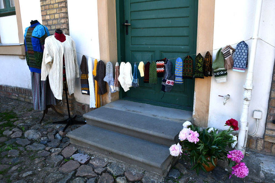 «Ja kāds iet garām un redz, ka mēs šeit adām, var nākt pievienoties,» stāsta I. Līdere, «adīsim divas stundas. Šogad nav daudz cilvēku, jo notiek arī citi pasākumi, tāpēc citus gadus esam bijuši vairāk.» Iekšpagalmā izvietoti arī dažādi cimdi no fonda, kuros ieadīti īpaši raksti, – interesantākie ir tie cimdi, no kuriem palicis tikai mazs fragments. Cimdu rakstus I. Līdere mēdz pārzīmēt uz papīra, lai apgūt tos varētu arī citi. «Šai jakai ir jau 32 gadi, taču es to joprojām neesmu pabeigusi,» I. Līdere stāsta par savu darbu, «man ir dzijas, adatas, man atlicis to tikai sašūt un piešūt apkakli.» Adīšana speciālistei ir ierasta no ģimenes, jo adījusi arī mamma. «No seniem pierakstiem un vecmāmiņas stāstītā zinu, ka mums senatnē dzimtā bijusi akla adītāja,» stāsta I. Līdere, «jāteic, mums gēnos ir kaut kas, kas rada mīlestību pret adīšanu.»