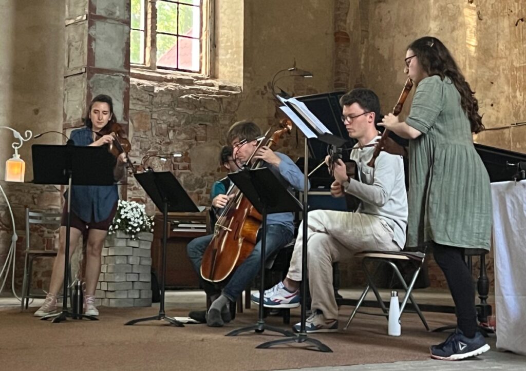 Vācijas senās mūzikas ansamblis «I Zefirelli» izvēlēts dalībai «Radošās Eiropas» rezidenču programmā «EEEMERGING+», kas atbalsta labākos Eiropas jaunās paaudzes senās mūzikas ansambļus. No 17. augusta rezidējot Zvārtavas pilī, ansamblis izstrādāja koncertprogrammu, kuras publiskais mēģinājums notika Iecavā pirms uzstāšanās Mazajā ģildē Rīgā. FOTO – Arta Riekstiņa