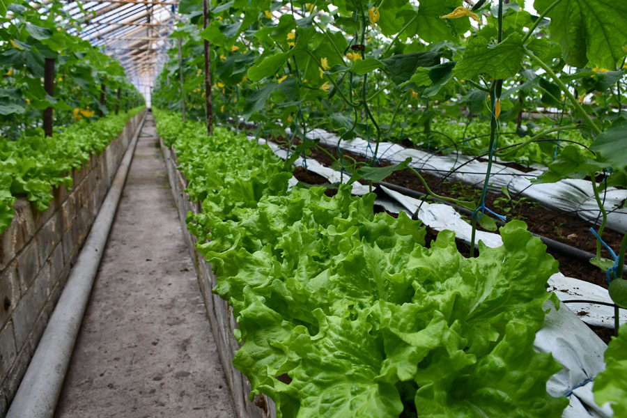 Abas kultūras divās siltumnīcās ar kopējo platību ap 3000 m² stādītas vienlaikus un kopā, jo tad audzēšana sanāk taupīgāka. Kamēr gurķi tikai aug un sasnieguši vien pusaugu vecumu, salātiem tiek pietiekami daudz gaismas, lai veidotu galviņas. Kaut salāti nav tā cimperlīgākā kultūra, tāpat, kā atzīst dārzniecības tirdzniecības vadītāja Anda Jākobsone, zināmas rūpes un pūles ir jāvelta – nekas pats no sevis neizaug. Salāti bija jāsasēj, jāizaudzē stādiņi, jāsastāda un jālaista. Dārzniecība izvēlējusies salātu šķirni ‘Caipira’. A. Jākobsone to slavē. Ja vien sēklas ir dabūjamas, var audzēt arī mazdārziņā, jo veido ļoti skaistas galviņas, lapas ir mīkstas un ar maigu garšu.