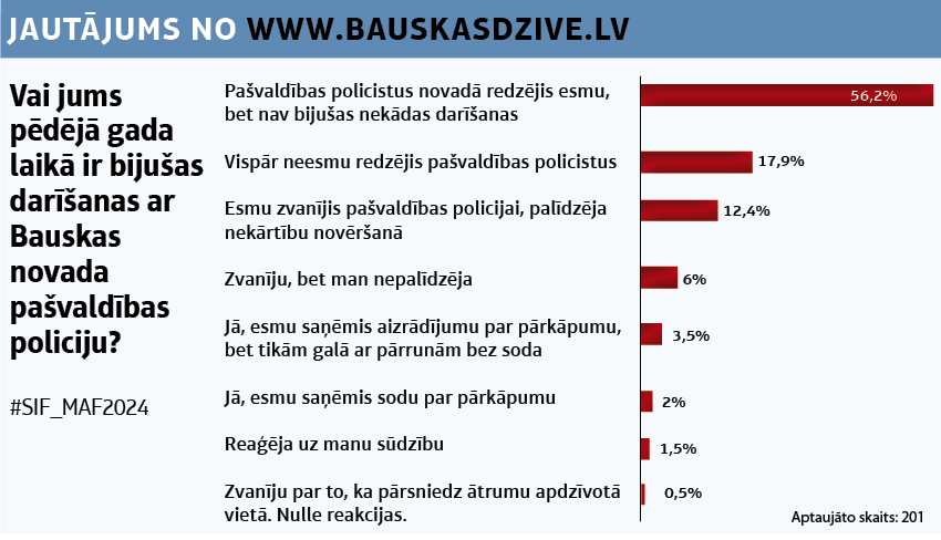 Oktobrī Bauskas novada pašvaldības policijai izdevās notvert pārkāpējus, kas bija ierīkojuši nelegālu izgāztuvi kādā privātīpašumā Bārbeles pusē. Policijas priekšnieks Egīls Gailis pauž gandarījumu par kolēģu paveikto. Šādas lietas pašvaldības policistu veikumam ļauj izskanēt skaļāk, taču tās darbs neapstājas ne dienu, un šā gada deviņos mēnešos policisti devušies uz 3113 izsaukumiem.