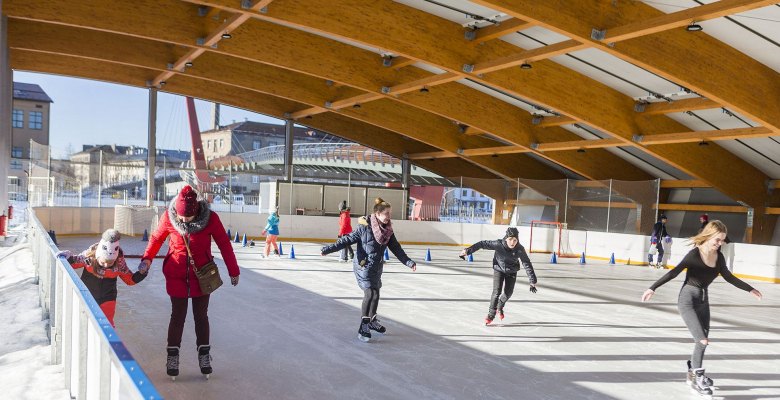 Pasta salas slidotavā Jelgavā iedzīvotājiem tiek nodrošināti publiskās slidošanas seansi. Atsevišķos seansos atļauts piedalīties ar nūjām. Šeit trenējas arī Jelgavas Ledus sporta skolas audzēkņi. Foto:jelgava.lv