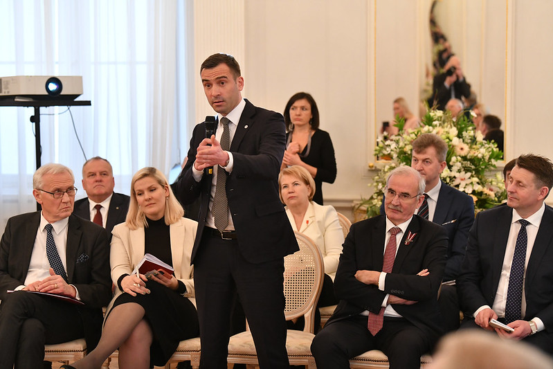 Šodien, 27.martā, vides aizsardzības un reģionālās attīstības ministrs Māris Sprindžuks Rīgas pilī tikās ar Valsts prezidentu Egilu Levitu un pašvaldību vadītājiem, lai pārrunātu aktuālos jautājumus pašvaldībās un kopīgu sarunu ceļā, meklētu risinājumus attīstībai svarīgās jomās. Foto: Ilmārs Znotiņš