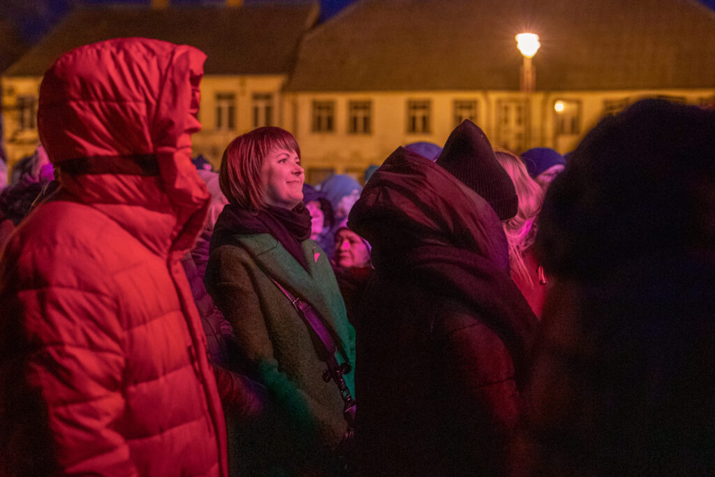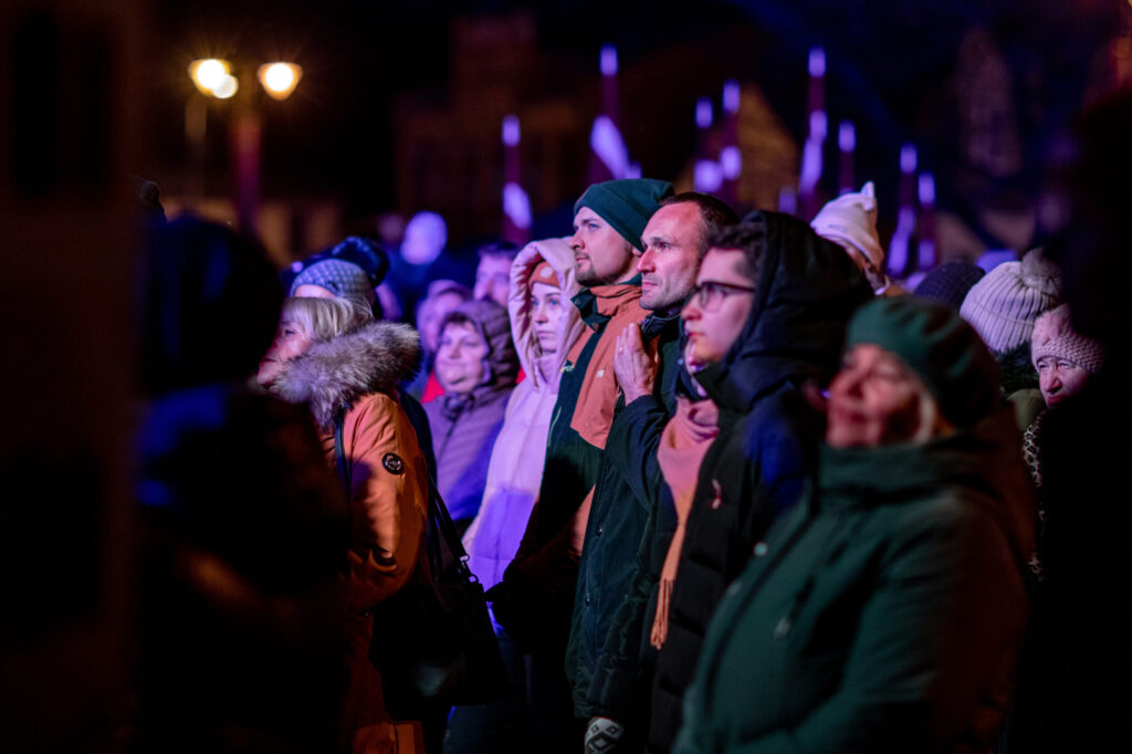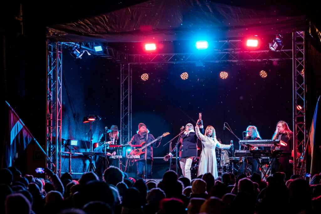Ielas pārpildītas, ceļus ik pa laikam aizsprosto automašīnas. Salīdzinot ar lāpu gājienu pilsētā 11. novembrī, kad ļaužu bija maz, uz koncertu kopīgās dziesmās pulcējušies krietni vairāk cilvēku, kas priecē ikvienu. Lai arī laikapstākļi nežēlo, šķiet, ka iedzīvotājiem tas netraucē.