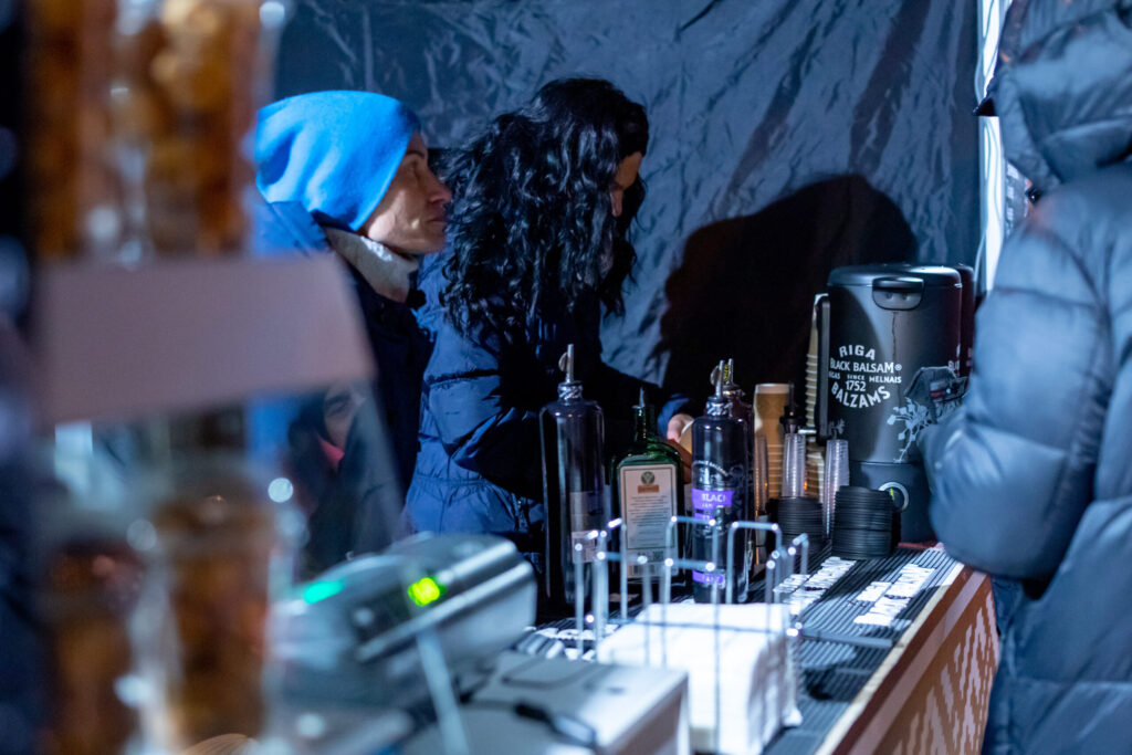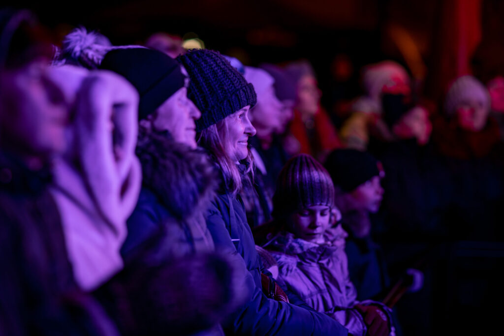 Pūlī vīd krūzītes ar Kugrēna vīna darītavas, Rīgas „Melnā balzama” un smiltsērkšķu karstajiem dzērieniem no „ZELT”. Līdz ar vieglu sniegu, koncerts iesācies ar valsts himnu. Smaidīt liek mazie vecāku plecos ar Latvijas karodziņiem rokās. Pūlis mīl kustēties, dejot un dziedāt līdzi un dziesmas, šķiet, izgaismo Bausku vēlreiz.