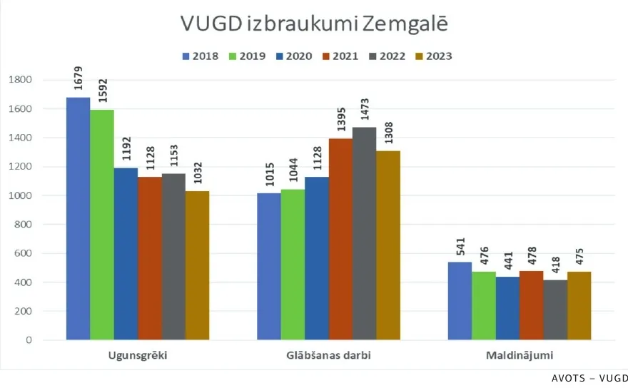 Zemgales reģionā 2023. gadā nedaudz samazinājies kopējais izsaukumu skaits. VUGD Zemgales reģiona pārvaldes ugunsdzēsēji glābēji 2023. gadā devās uz 2815 notikumiem, no kuriem 1032 bija ugunsgrēki, 1308 glābšanas darbi, bet 475 izsaukumi bija maldinājums. Pirmo reizi vairāku gadu laikā Zemgalē samazinājās saņemto izsaukumu skaits uz glābšanas darbiem. Turpināja arī sarukt izsaukumu skaits uz ugunsgrēkiem.