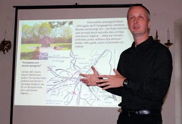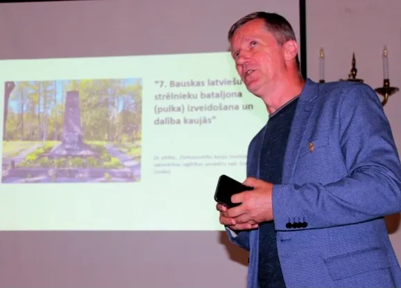 Ziemassvētku kauju muzeja sabiedrības izglītības projektu vadītājs Gatis Ozoliņš raksturoja latviešu strēlnieku pulku izveidošanu cariskajā armijā, sīkāk skaidrojot 7. Bauskas bataljona vēsturi. Pilsētu Tukuma, Bauskas un Valmieras vārdi pulkiem piešķirti no novadiem, lai tie skanētu līdzīgi krieviski un latviski. Tāpēc nav izvēlēta Mītava, kā tolaik sauca Jelgavu, jo šo vārdu krievi neatzina.