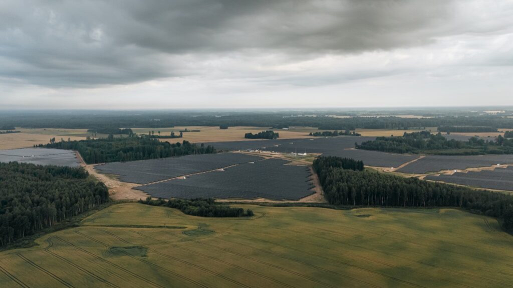 “Vārme” saules enerģijas parks atrodas Kuldīgas novadā un aptver 110 hektāru teritoriju, kur uzstādīti vairāk nekā 156 000 saules paneļu ar kopējo jaudu 94 MW.