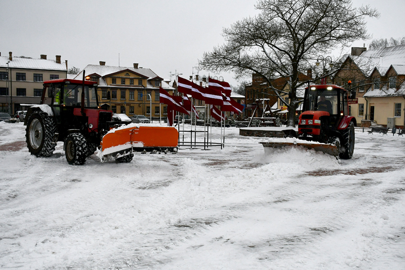 Šajās dienās Bauskā aktīvi strādā gan SIA «Vides serviss» sētnieki, gan traktortehnika, lai pilsētas ielas būtu atbrīvotas no sniega un slīdamība novērsta.