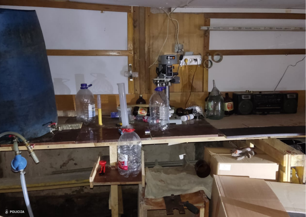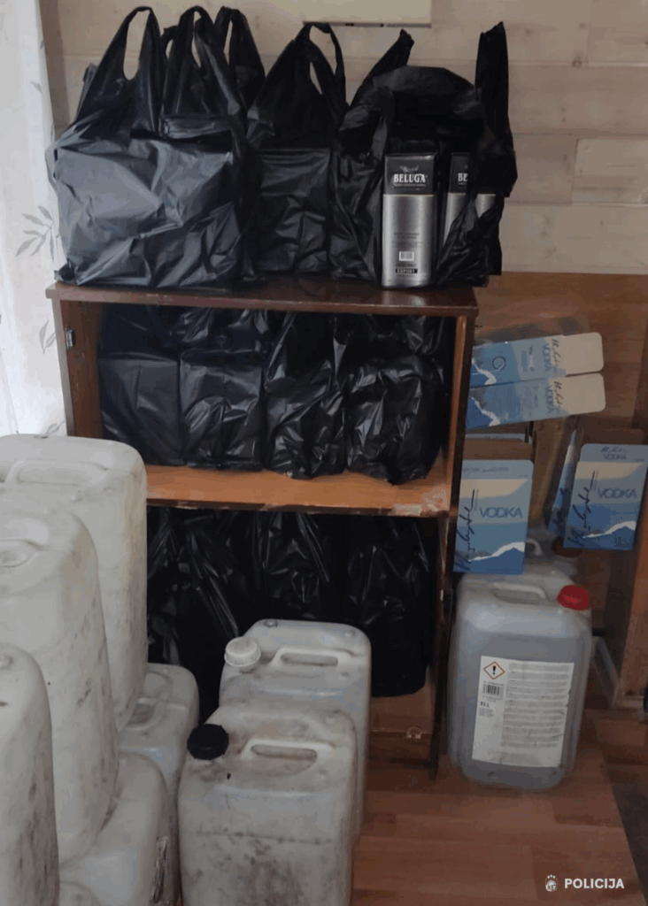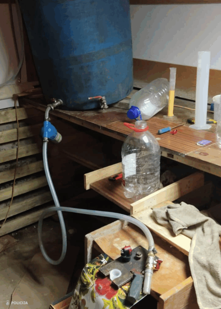 Aizdomās par alkoholisko dzērienu un spirtu saturošu šķidrumu nelikumīgu ražošanu un arī tabakas izstrādājumu uzglabāšanu, pārvietošanu un realizāciju lielā apmērā likumsargi aizturēja 1961. un 1963. gadā dzimušus vīriešus, kuri iepriekš nav nonākuši policijas redzeslokā. Abām personām pašlaik ir piemēroti ar brīvības atņemšanu nesaistīti drošības līdzekļi.