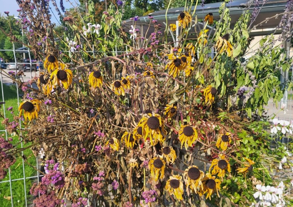 “Piektdien, 18. augustā, SIA “Vizii Urban” kopā ar pašvaldības pārstāvjiem, apsekojot ziedu stāvokli, secināja, ka tie ir pārziedējuši un arī iestādīti pārāk mazos puķu podos.