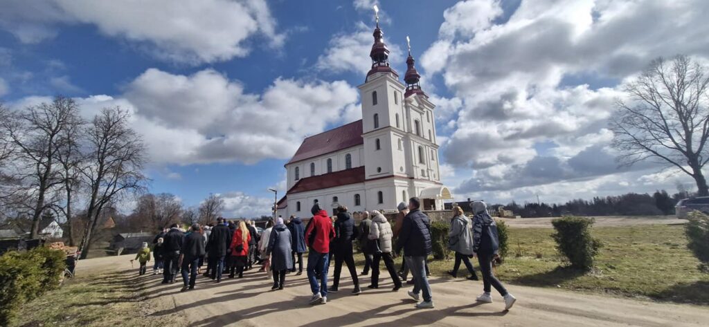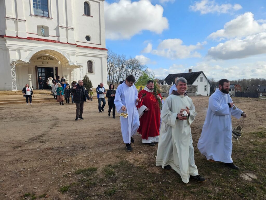 Pirms Palmu jeb Pūpolsvētdienas, 23. martā, Skaistkalnes Vissvētākās Jaunavas Marijas debesīs uzņemšanas Romas katoļu baznīcas teritorijā un dievnamā notika uzkopšanas darbi, gatavoti rotājumi ar palmām un pūpoliem, lai pienācīgi sagaidītu kristīgās pasaules atzīmēto Kluso nedēļu.