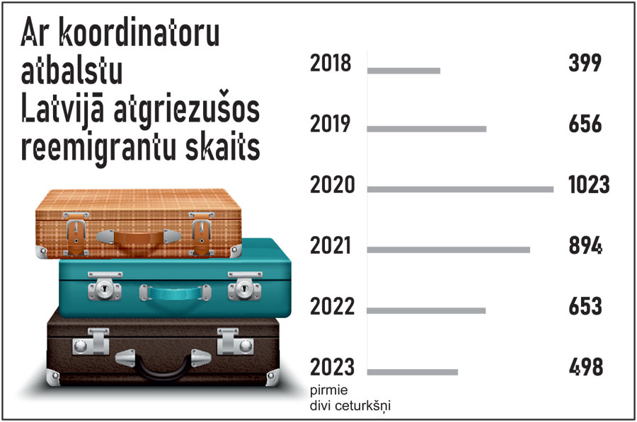– Koordinators reemigrantiem sniedz bezmaksas konsultācijas un informatīvu atbalstu par aktuāliem jautājumiem saistībā ar atgriešanos Latvijā. Potenciāliem reemigrantiem palīdzam pieņemt pārdomātus lēmumus un sagatavoties šim procesam. Atbalsts sākas ar iepazīšanos un uzklausīšanu par būtiskākajām aktualitātēm, sasāpējušiem jautājumiem. Tad strādājam ar šo informāciju un sagatavojam individuālus piedāvājumus. Ja nepieciešams, sazināmies ar citām institūcijām un valsts iestādēm, kā arī «savedam kopā» reemigrantu ar vajadzīgo iestādi.