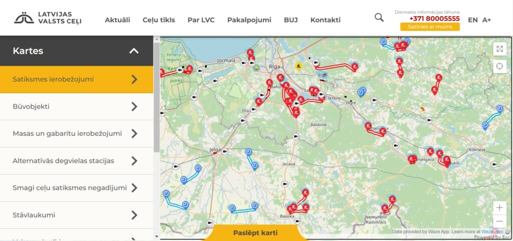 Plānojot ikdienas braucienus, iedzīvotāji aicināti ieskatīties remontdarbu kartē LVC mājaslapā, kur atzīmēti visi aktuālie satiksmes ierobežojumi uz valsts autoceļiem.