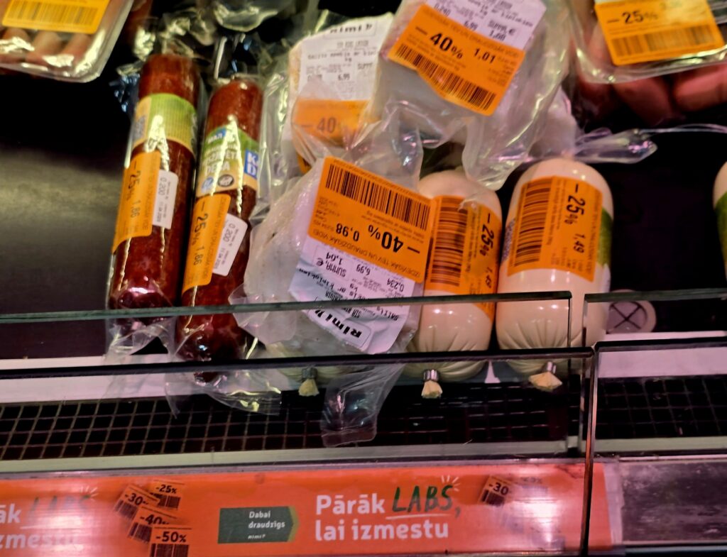 E. Bičkova paskaidroja, ka šie produkti ir marķēti ar īpašām oranžām uzlīmēm, lai pircēji varētu tos viegli pamanīt un iegādāties kvalitatīvu pārtiku par zemāku cenu, vienlaikus palīdzot samazināt pārtikas atkritumu apjomu Latvijā.