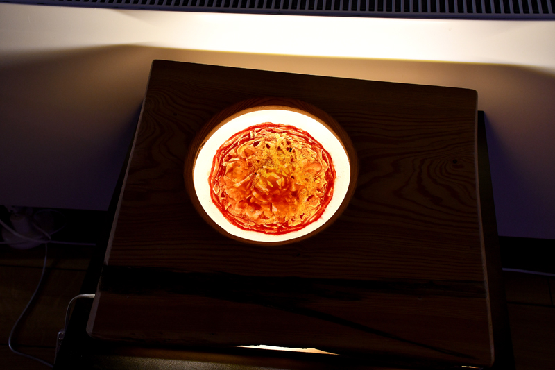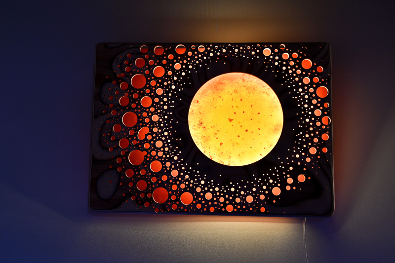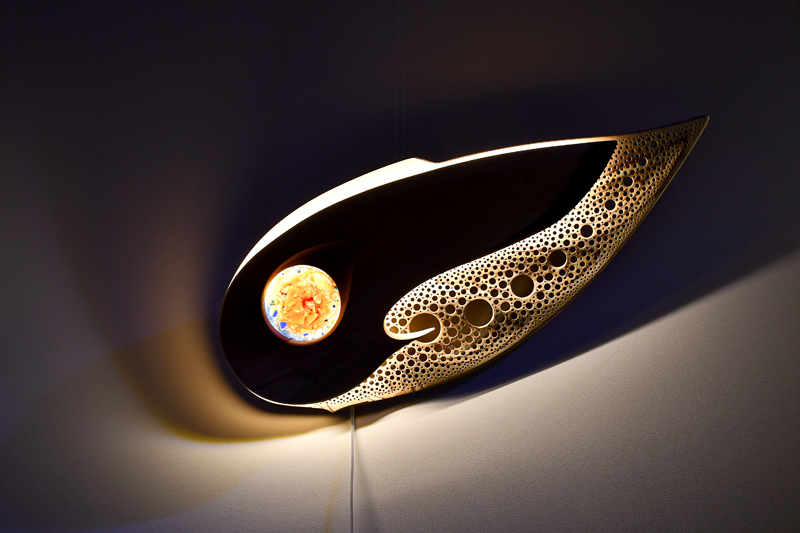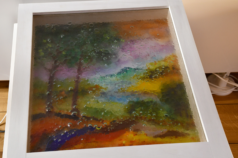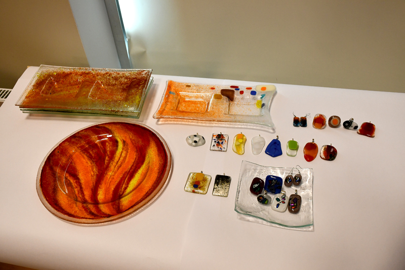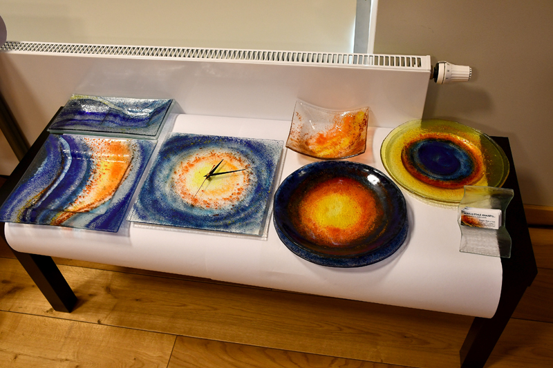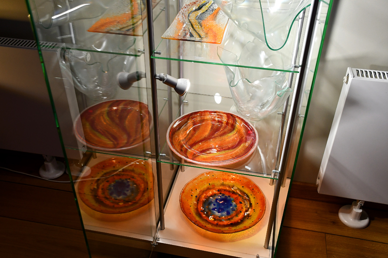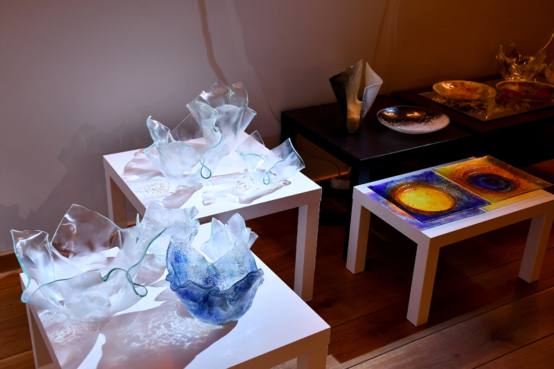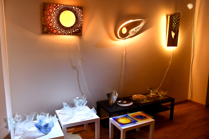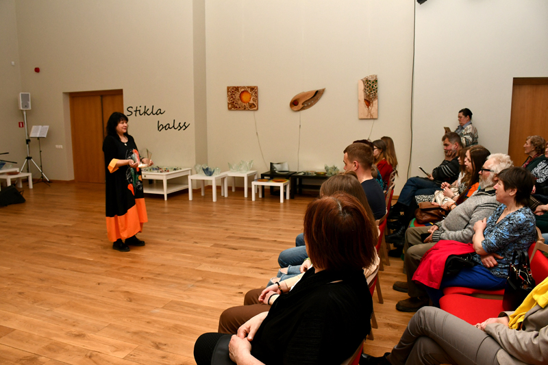 Zālē pasākuma «Stikla balss» laikā publika sēdēja uz skatuves, otrādi nekā parasti, lai visā koncerta un tikšanās gaitā varētu skatīt un izjust gan stikla mākslinieces Ingas Salmiņas veidoto trauku un rotu ekspozīciju telpā, gan stiklā un kokā darinātos gaismas objektus pie sienām. Mākslas objekti ir stikla mākslinieces un koktēlnieka Jāņa Ziemeļa mākslu sintēze. Pašlaik Inga esot ceļā uz to, kā darbos apvienot stiklu un mālu.