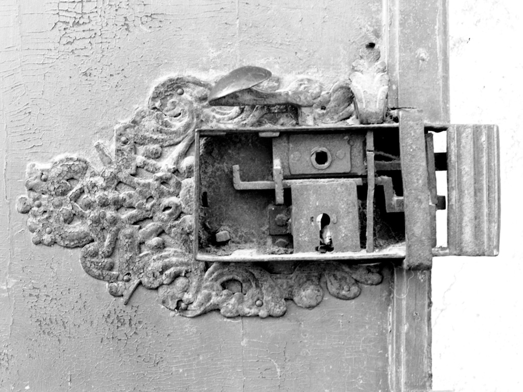 Kabiles muiža Kuldīgas novadā. Dzīvojamās ēkas centrālo durvju apkalums.1969. g. Foto  Mārcis Leopolds Kļaviņš, Imants Lancmanis.