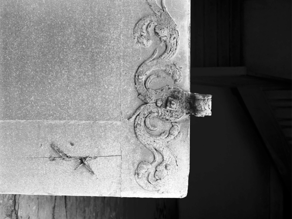 Zlēku muiža Ventspils novadā. Klēts durvju vērtnes.1968.g. Foto  Mārcis Leopolds Kļaviņš.