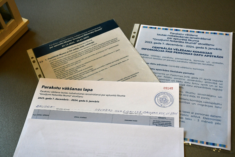Pēc Centrālās vēlēšanu komisijas lēmuma rīkot parakstu vākšanu tautas nobalsošanas ierosināšanai par apturētā likuma «Grozījumi Notariāta likumā» atcelšanu iedzīvotāji savu nostāju var apliecināt, sākot ar 7. decembri, un līdz pat 2024. gada 5. janvārim.