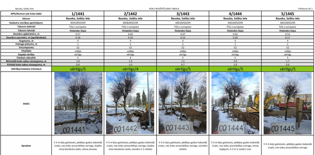 Bauskas novada pašvaldības uzdevumā SIA “Koku eksperts” pārstāvis Gvido Leiburgs ir novērtējis Salātu ielas kokus un sagatavojis atzinumu. Izpētes laikā analizēti 22 koki, kas atrodas būvdarbu ietekmes zonā un izstrādātas rekomendācijas par turpmāko rīcību.