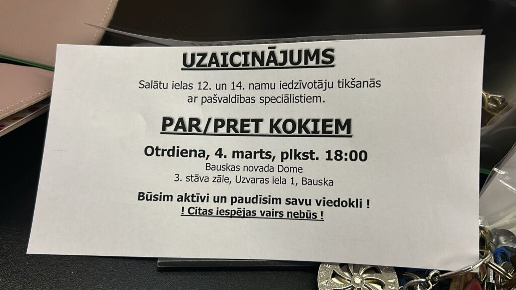 Turklāt Salātu ielas 12. un 14. nama iedzīvotāji oficiāli vērsās pašvaldībā ar iesniegumu, aicinot rast kompromisu. Viņi piedāvāja saglabāt vismaz sešus kokus, tostarp divus lielus bērzus un vairākas liepas, uzsverot to ekoloģisko un estētisko vērtību.