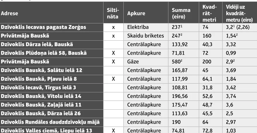 Savukārt šī gada pieaugumu daļēji nodrošināja jaunais SIA «Bauskas novada komunālserviss» apkures tarifs – 81,74 eiro par megavatstundu bez pievienotās vērtības nodokļa. Saņemtā statistika liecina, ka nerenovētu māju rēķini par kvadrātmetru janvārī bijuši no 2,5 līdz 3,74 eiro. Protams, ka var būt dzīvokļi, kur maksa ir lētāka vai dārgāka.