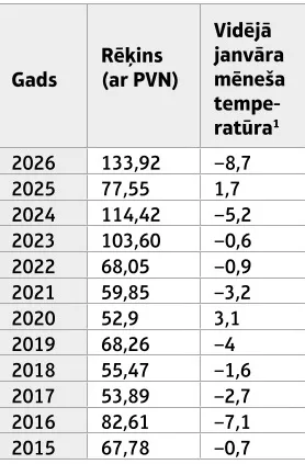 Latvijas vides, ģeoloģijas un meteoroloģijas centra dati liecina, ka datu uzskaitē kopš 2015. gada šis janvāris bija pats aukstākais mēnesis – vidēji -8,7 grādi. Līdzīgākie laika apstākļi bija 2016. gadā, kad bija vidēji -7,1 grāds un 2024. gadā, kad bija -5,2 grādi.