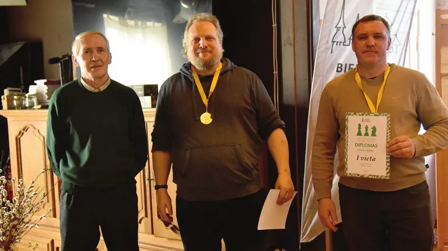 LIETUVAS šaha čempionāta komandām 1. līgas uzvarētāji – Kaspars Kalniņš (no labās), Vairis Kurpnieks un Linas Dijokas.