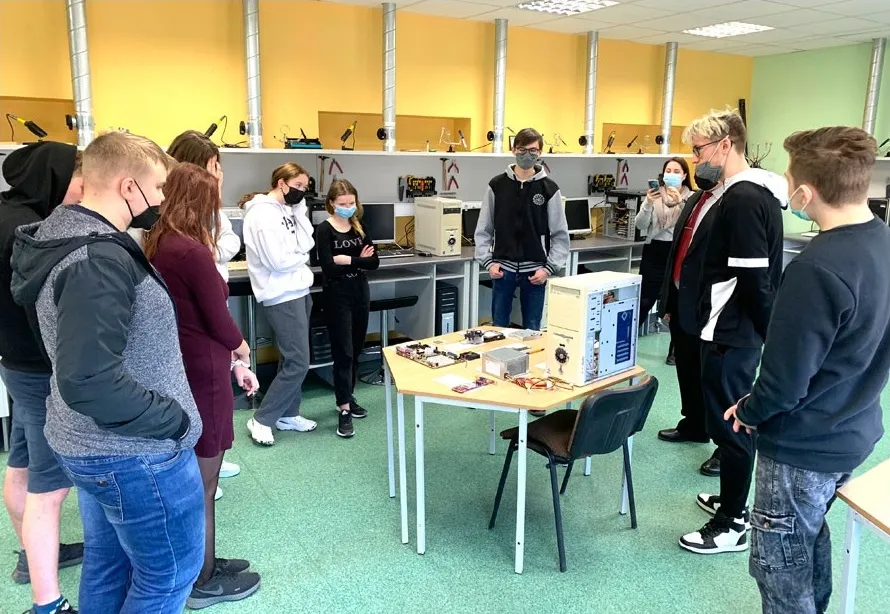 Skolā var izmācīties arī par datorsistēmu tehniķi. «Šeit gan uzreiz gribu piebilst, ka šī profesija jāizraugās ļoti rūpīgi, jo tas, ka man patīk spēlēt datorspēles, nenozīmē, ka kļūšu par datorsistēmu tehniķi,» stāsta S. Jonase, «profesija ir pieprasīta, taču ir ļoti rūpīgi jāmācās, lai varētu iegūt diplomu.» Stacijā skolēnus sagaidīja nopietns uzdevums – izjaukts dators, kuram jānosauc izņemto detaļu nosaukumi, kā arī jāpastāsta, kas kam domāts. Daži pārliecinoši sauca detaļu nosaukumus, taču daļai šīs lietas bija pavisam svešas, tāpēc palīgā nāca nodaļas vadītājs Uldis Šķirmants. Par skolu diskutēja tehnikuma audzēkņi, kas jau divus un trīs gadus mācās par datorsistēmu tehniķiem. «Ja gribas vairāk brīva laika un reizē arī mācīties, tad iesaku nākt šurp, jo visu var izdarīt un apvienot ar citām aktivitātēm,» ieteica Edgars Mediņš. Draugam piekrita Krišjānis Voldemārs Gavrilka: «Zini, ir pusslodzes darbs, šī ir gandrīz kā pusslodzes skola.» «Mājasdarbu tikpat kā nav, stundas ir vieglas,» savu vērtējumu pauda Aigars Vendlands, «es spēlēju volejbolu, pulksten 15 jau esmu brīvs un līdz vakaram nav, ko darīt.»