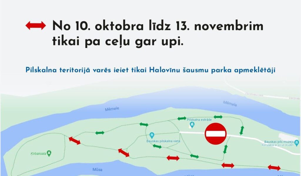 Bauskas novada domes sabiedrisko attiecību nodaļā informēja, ka tiltiņš uz Ķirbaksalu tiks demontēts līdz ar sala iestāšanos. No otrdienas, 10. oktobra, iedzīvotājiem pastaigām jāizmanto ceļš gar Mūsas krastu. Šausmu parka darbības laikā Bauskas novada pašvaldības policija nodrošinās kārtību pilsētā, bet pasākuma teritorijā par kārtību jārūpējas pasākuma organizatoram, norādīja pašvaldībā.
