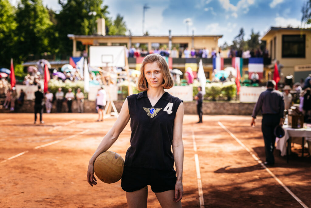 Filmas galvenā varone – Dzidra Uztupe-Karamiševa, pirmā komandas kapteine (Agnese Budovska). Publicitātes foto, autors: Jānis Konons.