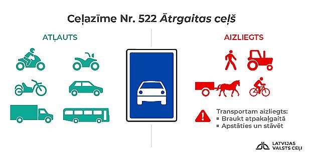 – velosipēdu vadītājiem un gājējiem aizliegts pārvietoties pa šo ceļu, šiem satiksmes dalībniekiem paredzēta infrastruktūra gar paralēlajiem ceļiem;