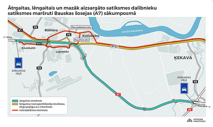 Pēc LVC informācijas, lai nokļūtu no Rīgas uz Ķekavu, velosipēdisti un gājēji var izmantot maršrutu pa Rīgas ielām, tālāk pa velosipēdistu un gājēju infrastruktūru Valdlaučos un pa jaunizbūvēto mikromobilitātes infrastruktūru. Pierīgas iedzīvotājiem arī ir iespēja ar kājām vai velosipēdu nokļūt līdz veikalam “A7”. Perspektīvā pēc 2025.gada tiks izbūvēta arī infrastruktūra gājējiem un velosipēdistiem no veikala “A7” līdz Rīgas robežai.