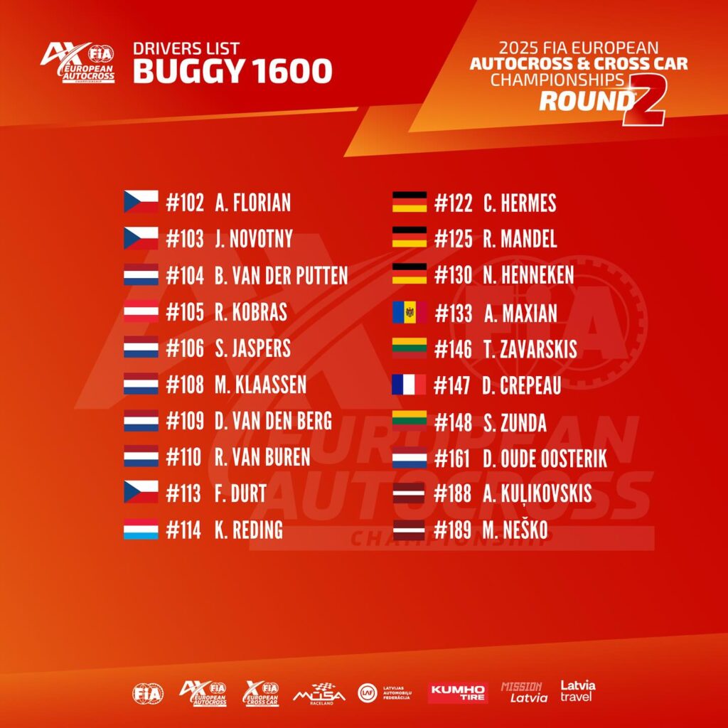 Latvijas sporta faniem ir kam just līdzi: “Buggy 1600” klasē tie ir Andris Kuļikovskis un Mikus Neško, “SuperBuggy” klasē par uzvaru cīnīsies Ervīns Grencis, Māris Līcis, bet “CrossCar” klasē autosporta debitants Markuss Ozoliņš, Kristians Grencis un Markuss Ūtēns.