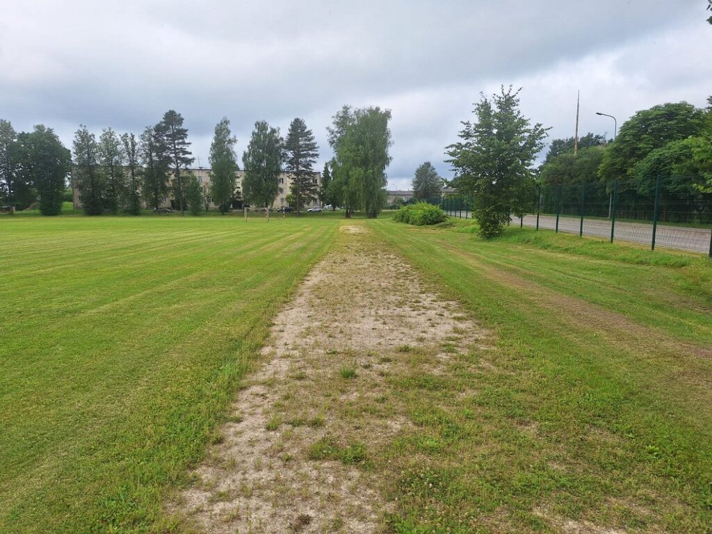 Vecumnieku stadionā skrejceliņa aprises nebūt nav vienkārši saskatāmas. Foto: Raimonds Rudzāts/LTV