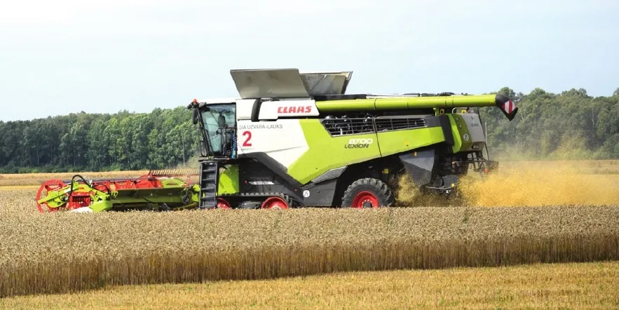 Kaut no rietumu pamales jau atkal tuvojas nokrišņi, paspējam – tīrumā tobrīd darbojas trīs kombaini, kā arī graudu pārvadāšanas transports. Izrādās, smagajām kravas automašīnām uz lauka braukt ir liegts, jo atstāj pārāk lielas rises, tāpēc no kombaina graudi vispirms nonāk traktorā, kurš savukārt tos nogādā uz automašīnām.