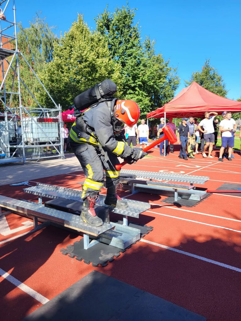 Sacensību «Stiprais ugunsdzēsējs» distance veidota, balstoties uz Eiropā un ASV populāru sporta veidu, kas pārbauda ugunsdzēsēju glābēju profesionālās iemaņas un fizisko sagatavotību. Distance sastāv no pieciem posmiem – uzkāpšanas tornī, nesot šļūteņu saini, šļūteņu rituļa uzvilšanas uz torņa augšējās platformas, spēka pārbaudes, sitot ar āmuru pa sliedi, ar ūdeni pilnas šļūtenes vilkšanas un gandrīz 90 kg smaga manekena nogādāšanas līdz finišam. Visa distance tiek veikta ugunsdzēsēja glābēja speciālajā aizsargtērpā, turklāt individuālajās sacensībās dalībnieki elpo ar elpošanas aparāta palīdzību. Tādējādi tiek maksimāli tuvu imitēti tie apstākļi, kādos ugunsdzēsējiem glābējiem jāstrādā ugunsgrēkā.