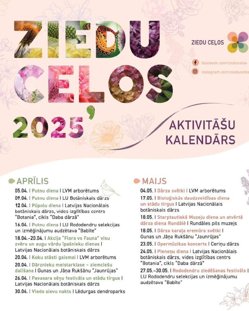 Šogad Rundāles pils muzejs līdzās citiem ziedošajiem Latvijas kolekciju dārziem – LU Botāniskajam dārzam, Gunas un Jāņa Rukšānu dārzam, Lēdurgas dendroparkam, Dārzkopības institūta ceriņu dārzam, LU Babītes rododendru audzētavai, LVM Kalsnavas arborētumam un Nacionālajam botāniskajam dārzam Salaspilī – piedalās apceļošanas akcijā “Ziedu ceļos”. Katrs no tiem piedāvā vienu dienu sezonā apmeklēt dārzu bez maksas.