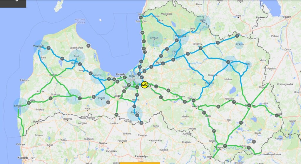 - Tallinas šoseja (A1) posmā no Rīgas līdz Saulkrastiem;