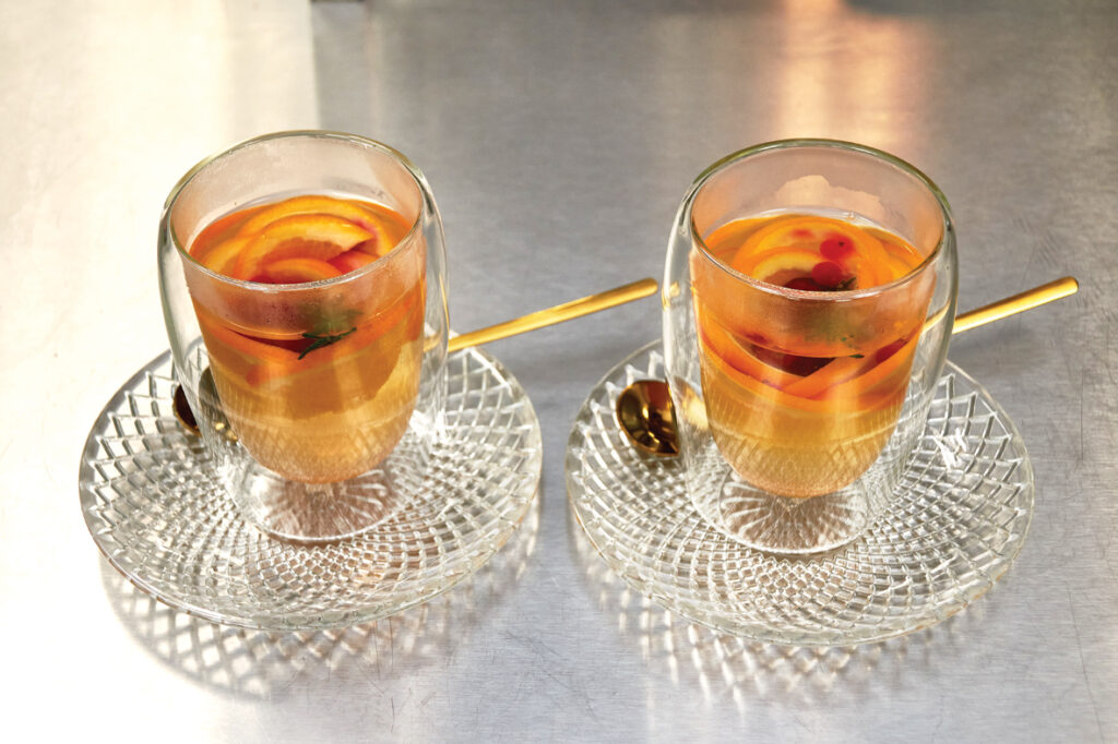 Lielākoties svētku maltītes ēdieni bija paredzēti tūlītējai pasniegšanai. Noderīgu pieredzi svētku priekšdarbu plānošanai varēja gūt no idejas kar-stā dzēriena pagatavošanai. Darbietilpīgākais paveikts jau iepriekš – no apelsīna šķēlītēm veidota rozete ar ogām un sīrupu sasaldēta kēksu silikona formiņās. Pirms pasniegšanas to tikai izņem no formiņas un ievieto skaistā glāzē, pārlej ar karstu ūdeni, un dzēriens ir gatavs. S. Jonase šo dzērienu ieteica gatavot piparkūku cepšanas rituāla laikā, tā radot papildu svētku noskaņu arī darba procesā.