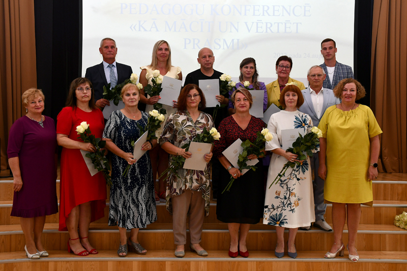 Kopā 13 Izglītības un zinātnes ministrijas pateicības un atzinības rakstus un četrus Bauskas novada apbalvojumus izglītības jomas darbiniekiem pasniedza Bauskas novada pedagogu konferencē «Kā mācīt un vērtēt prasmi?».