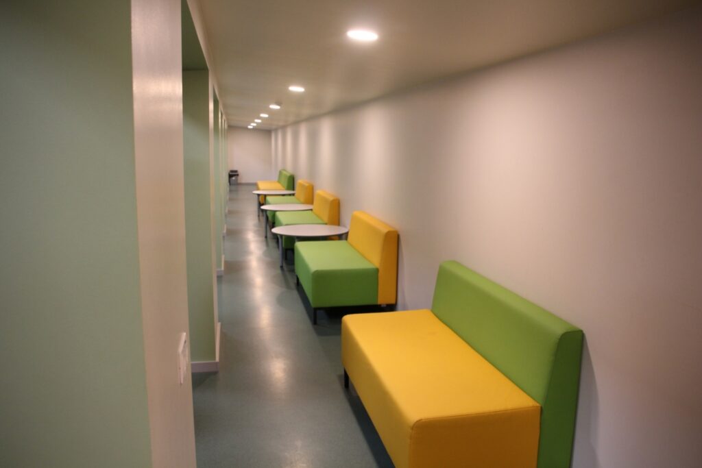 Pārmaiņas piedzīvojušas arī kāpņu telpas un gaiteņi, kas kļuvuši iestādes audzēkņiem drošāki un draudzīgāki – ir, kur apsēsties, atpūsties, kopīgi pavadīt brīvo laiku.