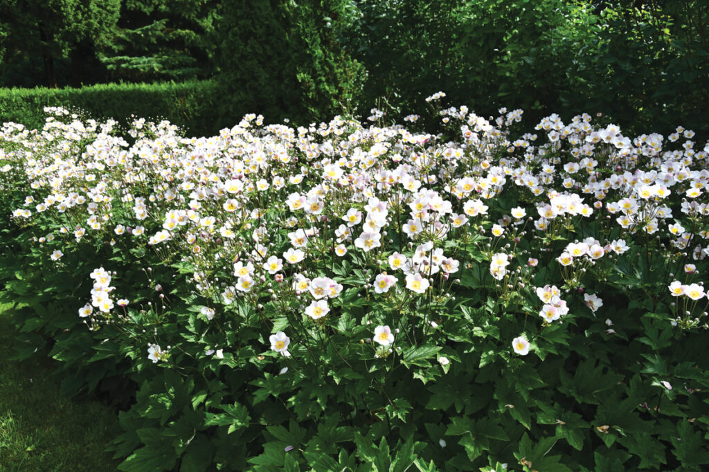 Veidojot dārzu, Inese seko līdzi tam, lai dobēs pastāvīgi ir kāda ziedu guba, kas paceļ dārzu. Tā, piemēram, pavasaros daudzkrāsaini izplaukst ceriņi. Viesošanās laikā skaisti ziedēja prāvs puduris vīnoglapu anemoņu. Ne lieti, ne vēji tām nav kaitējuši. Inesei patīk to maigā krāsa un ziedu apjoms. Savu uznācienu sagaidījuši arī flokši, tik lietavas tos izmērcējušas. Inese pārliecinājusies – ja flokšu ziedu čemurus nenogriež, kad tie sāk birt, tajos parādās jauni pumpuri. Bagātīgi zied kokveida hortenzijas, kuras skaistas visās ziedēšanas stadijās.