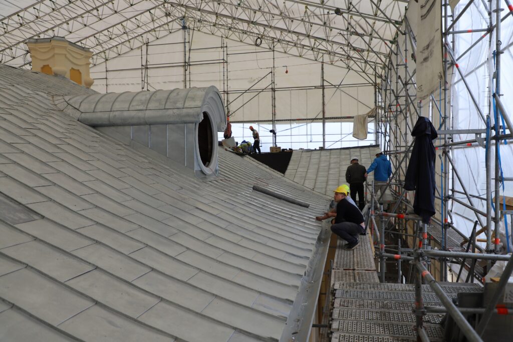 Jumta pārbūve sākās 2020. gadā, kad publiskā iepirkumu konkursā par darbu izpildītāju tika izvēlēts AS “Būvuzņēmums Restaurators”. Darbi noritēja četrās kārtās. 2020. gadā tika īstenota pirmā un otrā kārta, pārbūvējot pils dienvidu korpusa jumtu un daļu no austrumu un rietumu korpusa jumtiem. 2021. gadā noritēja sākotnēji iecerētā ceturtā kārta – jumta pārbūve daļā no pils rietumu korpusa un ziemeļrietumu šķērskorpusā. Noslēdzošajā trešajā kārtā šogad darbi notika daļā no pils austrumu korpusa un ziemeļaustrumu šķērskorpusā.