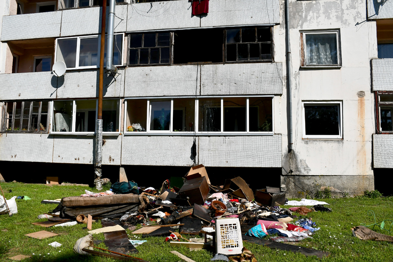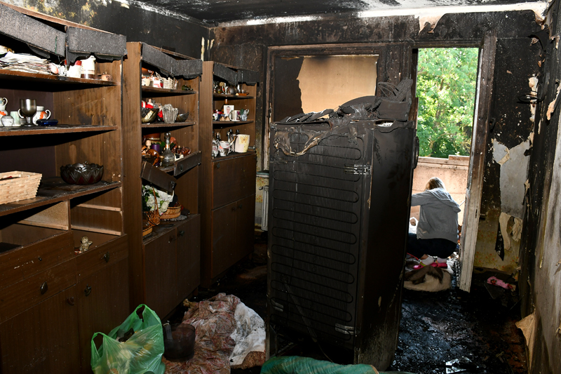 Izdegušais dzīvoklis nākamajā dienā pēc ugunsgrēka. Foto – Ivars Bogdanovs