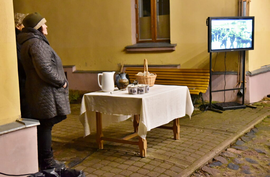 Bauskas muzeja pagalms bija dekorēts ar košu lampiņu virteni, kartona instalāciju, kurā attēlota aina no barikādēm Rīgā un kungu tērpi, virs kuriem karājās radio aparāti – tā laika zīmīgs simbols. Pasākuma dalībniekus sildīja ugunskurs un uz tā vārītā ābolu tēja. Lai klātesošos iepazīstinātu ar barikāžu laika atmiņām, fonā tika pārraidīti 1991. gada janvāra radio ieraksti krievu un latviešu valodā, apskatei izliktas fotogrāfijas, kas atklāja notiekošo galvaspilsētā pirms 34 gadiem. Pagalmā varēja sastapt arī Bauskas jaunsargus.